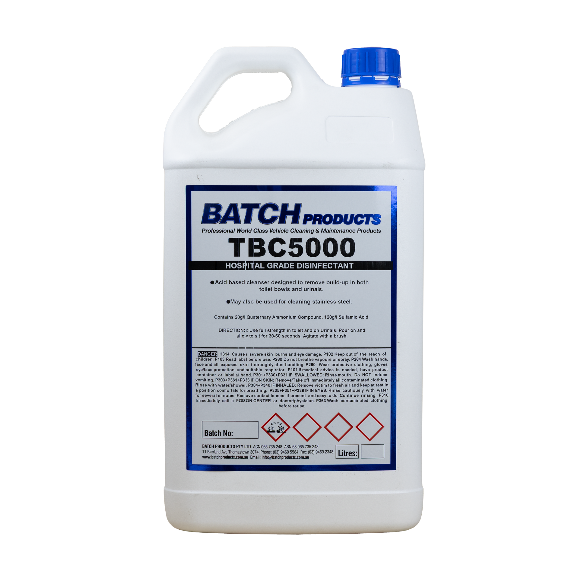 TBC5000 is an acid based cleanser designed to remove build up in both toilet bowls and urinals. It may also be used for cleaning stainless steel.